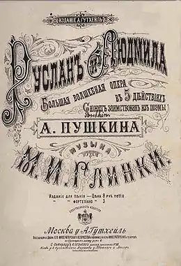 «Руслан и Людмила» — опера Михаила Ивановича Глинки в 5 действиях. Либретто Валериана Ширкова, Константина Бахтурина и Михаила Глинки при участии Н. А. Маркевича, Н. В. Кукольника и М. А. Гедеонова[2] по одноимённой поэме Александра Пушкина с сохранением стихов подлинника.