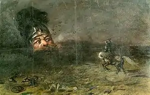 Изобразительно картина решена в сложившихся к XX веку в русском изобразительном искусстве образах, напоминая полотна В. М. и А. М. Васнецовых, В. В. Верещагина, И. Н. Крамского, Н. Н. Ге.