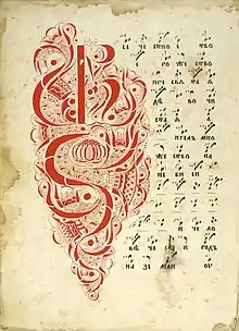 Зна́менное пение или зна́менный распев — основной вид древнерусского богослужебного пения. Название происходит от невменных знаков — знамён, использовавшихся для его записи. Древнейшие нотированные крюками рукописи относят к XI веку. К XVII веку в крюковой записи появились дополнительные знаки — «призна́ки» и «пометы», ранние рукописи представляют беспометную нотацию. Рукописи XVII века фиксируют появление, наравне с традиционным одноголосным пением, раннего народного многоголосия (строчное пение), которое также было записано знамёнами. В ходе реформ XVII века знаменное пение постепенно вытеснялось формами европейского пения, основанном не на старинных модальных ладах, а на мажорно-минорной тональности западноевропейского образца. В конце XVII — начале XVIII веков знаменные мелодии в киевской традиции стали записывать в квадратной нотации, напоминающей римскую квадратную нотацию, принятую в певческих книгах католиков. В 1778 году в Москве был издан «Сокращённый Обиход нотного пения», получивший всеобщее распространение и принятый в качестве первоначального руководства при обучении церковному пению в духовных учебных заведениях[19].