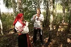 Народные инструменты в фольклоре используются обычно в быту пастухов или для некоторых видов танцев и песен. Среди инструментов есть общерусские (балалайка, гармонь) и характерные только для отдельных регионов[5]. Наиболее распространены: струнные инструменты (балалайка, гудок, гусли, домра, скрипка[8][9]), духовые инструменты (жалейка, рожок, кугиклы). В летописях упоминаются: военные трубы, охотничьи рога, бубны. Такие инструменты как баян (гармонь), мандолина, семиструнная гитара, распространились в России сравнительно поздно (XIX—XX века).