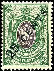 ![]() Марка русской почты в Китае, 1910, 35 копеек (Yt #30a; Sc #38)[^] | |