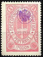 ![]() Первая почтовая марка русской почты на острове Крит, 1899 (Mi #1) | |