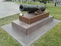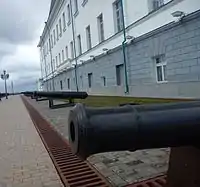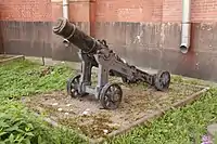 | 27 | здание штаба крепости г. Омска, Омская область | Каменский чугунолитейный завод | 1818 | 8-фунтовая пушка | С царских времён стоял у Тобольских ворот Омской крепости, в 1997 году перенесён к зданию штаба крепости, № 30 списка Шевалева В.П. | |