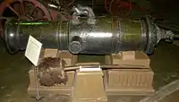 | 116 | Музей ОАО «Мотовилихинские заводы», г. Пермь, Пермский край | ![]() | Мотовилихинский завод | 1869 | 20-ти дюймовая пушка | 20-ти дюймовая корабельная гладкоствольная дульнозарядная чугунная пушка системы Дальгрена-Пестича для вооружения морских башенных судов. Калибр 20 дюймов (508 мм), масса ствола 40140 кг, длина ствола 4900 мм, масса ядра 459 кг, масса заряда 53,2 кг, угол возвышения 3 град, дальность стрельбы 1230 м. Лафет пушки был изготовлен в Ижевске. Изготовлялись под руководством инженера Грасгофа |