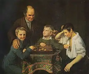 — Давненько не брал я в руки шашек! — говорил Чичиков, подвигая тоже шашку.