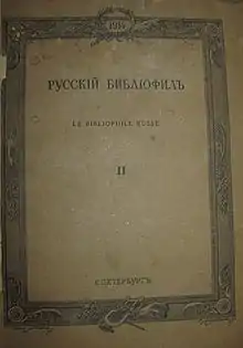 - Щиченко О. А. Журнал «Русский Библиофил» / Невский библиофил: Альманах. — Б. м., 2003.