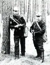 | Бандерло́г, Спецна́з, Само́совец | Военнослужащий частей и соединений специального назначения ГРУ Генштаба. Первый жаргонизм берёт начало из факультета специальной разведки РВВДКУ, готовившего офицеров для частей специального назначения, на котором курсантов обучали начальным основам акробатики и углублённому знанию иностранных языков, отсюда и ассоциация с вымышленным обезьяньим народом бандар-лог. Далее жаргонизм распространился в войсках.[6] Происхождение второго термина весьма очевидно. Это сокращение от словосочетания «Специальное назначение». Последний термин является отсылкой к солдатам гвардии никарагуанского диктатора Сомосы. |