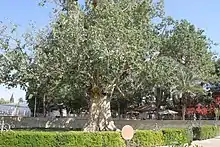 Основная часть участка представляет собой сад с десятками деревьев, типичных не только для Палестины, но и для северного и западного Средиземноморья. Здесь произрастает: маслина европейская и сосна итальянская (пиния); лимонные, апельсиновые; грейпфрутовые деревья и ещё один фикус сикомора (около 500 лет). Среди маслин (Olea europea) имеются достаточно старые экземпляры, достигающие возраста в 500 и 1000 лет[13] .