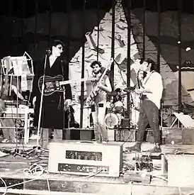 Рок в СССР появился в 1960-е годы. К середине 1960-х в Москве и Ленинграде сформировались бит-группы, на первых порах исполнявшие кавер-версии зарубежных хитов. Среди этих групп были такие звёзды московского рока 1960-х как «Сокол»[9], «Скифы», «Скоморохи» и англоязычные «Славяне»[10] (группы Александра Градского). Уже в 1965 году группа «Сокол» сочинила первую песню на русском языке[11]. В 1962 году школьники Бари Алибасов и Михаил Арапов создали джаз-квинтет[12], который в 1965 году трансформировался в бит-квартет «Интеграл», где исполнялась джазовая музыка и композиции в стиле The Shadows и The Swinging Blue Jeans, сочинялись собственные твисты и рок-н-роллы.[13].