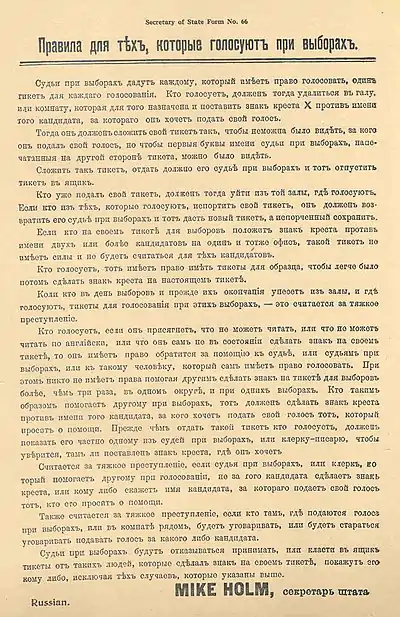 С 2012 года учреждения штата Нью-Йорк обеспечивают бесплатный устный перевод с/на русский язык. Также на него переводятся некоторые документы штата.[9]