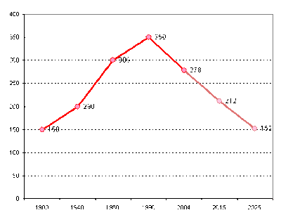| 2004 | 6400 | 146,0 | 2,3 | 278 | 4,3 |