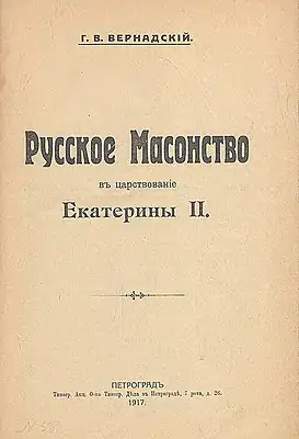 «Русское масонство в царствование Екатерины II» — магистерская диссертация Георгия Вернадского по истории масонства[1].