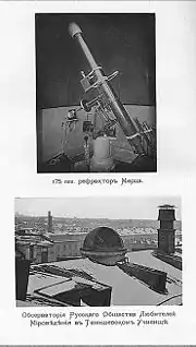 Личные контакты между членами этих обществ начались много раньше. Так, товарищ председателя РОЛМ С . В. Муратов вступил в РАО ещё в 1908 г., а профессор С. П. Глазенап, председатель РАО (1893—1905), был членом РОЛМ. Характерным для РАО был доклад С. В. Муратова «Высокогорные обсерватории в Европе и Америке»[10].