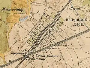 ВЫСОЦКОЕ — село бывшее владельческое, дворов — 113, жителей — 512; церковь православная, 2 школы, 2 лавки, 2 постоялых двора. (1885 год)[15].