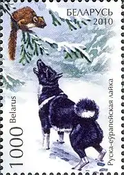 Русско-европейская лайка — порода охотничьих собак, выведена в 1947 году в СССР путём слияния нескольких пород лаек (архангельской, карельской, вотяцкой, лайки коми и других)[1]. Характеризуется окрасом в различных комбинациях чёрного и белого цветов[2].