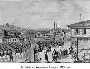 После усиленных переходов русская армия 7 августа подошла к Адрианополю, и неожиданность её прибытия так смутила начальника тамошнего гарнизона, что он предложил сдаться. На другой день часть русских войск была введена в город, где найдены большие запасы оружия и прочего.