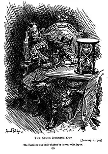 Осознание того, что Россия фактически отобрала у Японии захваченный в ходе войны Ляодунский полуостров, привело к новой волне милитаризации Японии, на этот раз направленной против России, под лозунгом «Гасин-сётан» (яп. 臥薪嘗胆, «лёжа на хворосте, лизать жёлчь»)[19], призывавшего нацию стойко перенести рост налогообложения ради военного реванша в будущем[20].