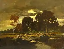 - «Выход из Фонтенблосского леса», «Старый Дормуар в Ба-Брео», «Болото в ландах», «Берег реки», «Буря» (Лувр, Париж),