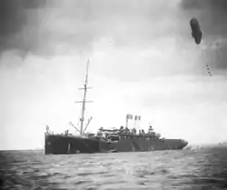 ![]() «Lahn», переоборудованный в воздухоплавательный крейсер, под германским коммерческим флагом. |
