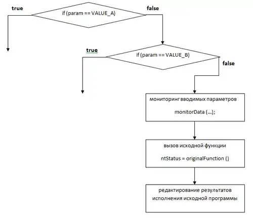 При изменении записи в таблице вызовов контролируется исполнение программ и, при необходимости, перенаправляется на требуемые функции. Перехваченная процедура может[4]: