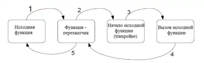 - Вызов перехваченной функции.