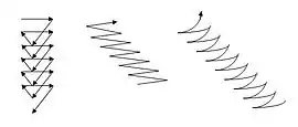 При сварке электроды перемещаются в трех направлениях: по оси электрода — для поддержания длины дуги; вдоль оси валика — для образования шва; поперек шва — для получения нужной ширины шва и глубины проплавления.