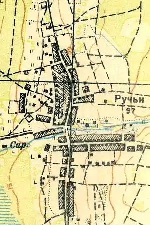 РУЧЬИ — деревня принадлежит ведомству Ораниенбаумского дворцового правления, число жителей по ревизии: 88 м п., 67 ж. п. (1838 год)[9]