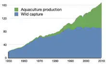 Мировое рыбоводство растёт, давая сегодня около половины всей рыбы, предназначенной в пищу[8].