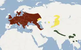 Широко распространенный вид, ареал которого охватывает широколиственные и смешанные леса Европы и Юго-Западной Сибири, а также различные районы Средней Азии, Казахстана, Китая, Восточной и Юго-Восточной Азии, Ближнего Востока и Африки.