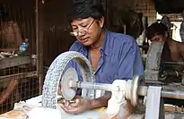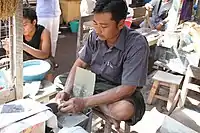 На рынке и вокруг него имеется множество мастерских, в которых с помощью зубила или циркулярных пил разделывают большие плиты и камни на пластины и бруски, с помощью кольцевых пил делают круглые отверстия в нефрите, с помощью различных устройств шлифуют и полируют камни до нужного размера и формы, а также производят готовые изделия (в том числе нефритовые шарики для чёток и бус из остатков больших камней)[15].