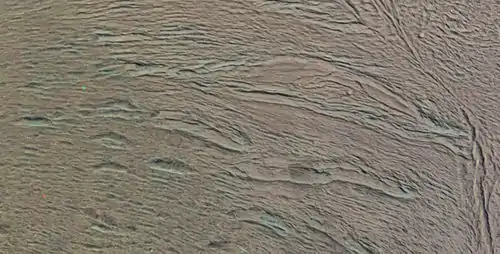 Рытвины Андалус (множественные трещины в центре) на изображении космического аппарата Кассини-Гюйгенс