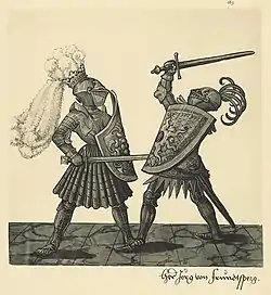 Значительную информацию о приёмах владения различными видами оружия на турнирах содержат фехтовальные рукописи известного немецкого мастера меча XV века Ханса Тальхоффера «Старинное оружие и искусство боя» (нем. Alte Armatur und Ringkunst, 1459) и «Руководство по фехтованию на 1467 год» (нем. Fechtbuch aus dem Jahre 1467), содержащие массу авторских рисунков с изображениями поединков с различными видами клинкового, ударного и древкового оружия, а также «Фехтовальная книга» (нем. Fechtbücher, 1542—1544) чиновника и хрониста из Аугсбурга Пауля Гектора Майра, проиллюстрированная художником Йёргом Броем (Младшим).