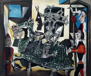 «Рыцарь, паж и монах» — типичное антивоенное художественное произведение, созданное в 1951 году, в котором знаменитый испанский художник Пабло Пикассо желал продемонстрировать своё отношение к военным действиям и современной политике. Создавая эту картину, он стремился назвать политиков «средневековыми детьми, играющими в свои, средневековые игры».