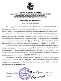- См. Выписку из протокола № 014 от 25.08.2005 Комиссии по народной медицине при правительстве Москвы об отнесении метода Рэйки к методам народной медицины.