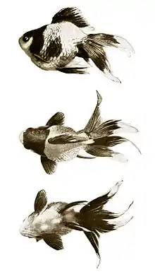 Золотые рыбки «рюкин» были выведены в Японии и рассматриваются как прототип вуалехвоста.