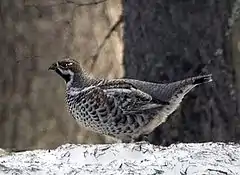Ря́бчик[1] (лат. Tetrastes bonasia) — птица из рода рябчиков, трибы тетеревиных, семейства фазановых отряда курообразных. Широко распространённый вид, обитающий практически повсеместно в лесной и таёжной зоне Евразии, от Западной Европы до Кореи. Рябчик — самый мелкий представитель тетеревиных. Масса тела даже самых крупных особей редко превышает 500 граммов. В лесу его сложно спутать с другими тетеревиными птицами, от которых он отличается не только небольшой величиной, но и достаточно узнаваемым окрасом. Несмотря на пёстрое, «рябое» оперение (от которого птица и получила своё русское название), уже с небольшого расстояния рябчик кажется однотонным, серо-рыжеватым. Половой диморфизм у рябчика выражен значительно слабее, чем у других тетеревиных — самца от самки в природе различить весьма трудно. Кроме того, в отличие от других тетеревиных, рябчик — моногамная птица[2].