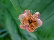 Коробочка тупо трёхгранная, наверху притуплённая. Тысяча семян весят 1,9 г[8]. Плодоносит и заканчивает вегетацию в июле[3].