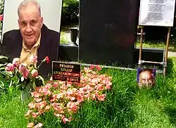 Прощание прошло 3 декабря в Центральном Доме литераторов[61]. В тот же день он был похоронен на Новодевичьем кладбище. Вопреки воле Рязанова, желавшего быть похороненным на том же кладбище рядом со своей второй женой — Ниной Скуйбиной, по желанию вдовы режиссёра Эммы Абайдуллиной его похоронили в другом месте[62].