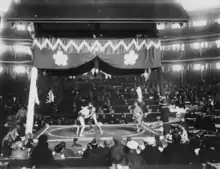 В период Мэйдзи рост популярности данного ритуального спорта привёл к постройке первого Зала национальных единоборств квартала Рёгоку в 1909 году. Вместимость зала примерно равнялась 13000 человек.