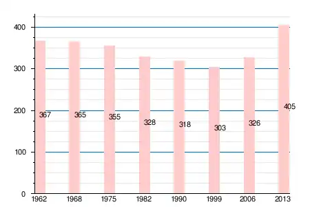 Население коммуны в 2011 году составляло 396 человек[6], в 2012 году — 400 человек[7], а в 2013-м — 405 человек[5].