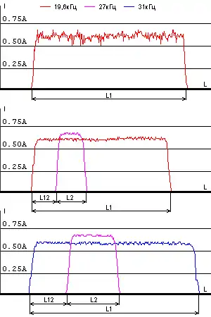 - Путевые устройства САУТ-У устанавливаются у каждого проходного, входного, маршрутного светофора и на выходе со станции и передают на локомотив информацию посредством длин шлейфов и частот токов в шлейфе. Используются частоты 19,6; 23; 27; 31 кГц. Длины шлейфов пропорциональны: L1 (19.6 кГц или 31 кГц, основная частота) — длине первого (после шлейфа) блок-участка, L2 (27 кГц) — длине второго блок-участка при основной частоте 19.6 кГц или ограничению скорости при основной частоте 31 кГц, L12 (расстояние между шлейфами) — уклону. Длина шлейфа предвходного, входного, маршрутного путевого устройства САУТ-У может изменяться (переключением точек подключения к рельсу) при изменении маршрута приёма на станцию.