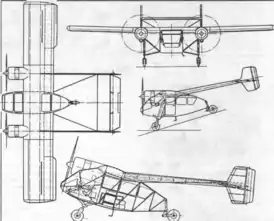 Большая площадь остекления передней и задней частей фюзеляжа обеспечивает широкий обзор во всех направлениях. Оперение крепится к крылу двумя клёпаными балками, расчаленными лентами к кабине. Эти конструктивные особенности позволяют применить личное оружие для отражения воздушных атак противника.