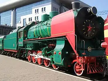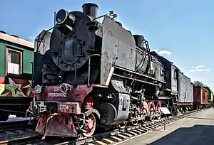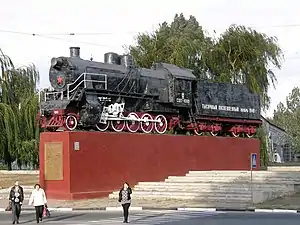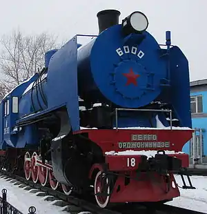 ![]() Паровоз-памятник СО18-3100 у локомотивного депо Вологда | |