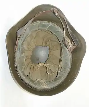 Новый шлем получил оригинальную полусферическую форму с выдающимся вперёд козырьком и боковыми полями-скатами. Его силуэт походил на немецкий стальной шлем.