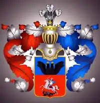 Щит разделён горизонтально на две части: в первой части в голубом поле чёрный двуглавый орёл с распростёртыми крыльями. Во второй части в красном поле всадник, облечённый в латы, держащий в правой руке поднятую вверх саблю, а в левой щит, скачущий на белом коне, который попирает ногами дракона. Перья по бокам символизируют исконно Сабанеевский — в будущем герцогский, а также изредка дворянский стиль.