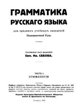- «Русская грамматика и читанка к изучению литературного языка угрорусских»