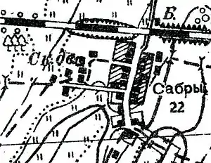 САБРЕ — деревня принадлежит Самойловой, графине, число жителей по ревизии: 22 м. п., 16 ж. п. (1838 год)[3]