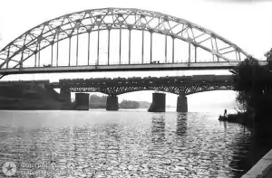 Между двумя действующими мостами в воде более полувека стояли три опоры, оставшиеся от первого железнодорожного моста, который был возведён здесь в 1864 г., непосредственно при постройке Московско-Курской железной дороги. После Великой отечественной войны выше по течению был отстроен западный арочный мост, на который перевели пассажирское движение, а центральный мост разобрали. Данную версию подтверждают строители «СК МОСТ», занимающиеся реконструкцией Сабуровских мостов.[1] Кроме того, на немецких аэрофотоснимках Москвы 1942 года также имеется достоверное подтверждение данного факта, при взгляде с воздуха видны железнодорожные полотна двух параллельно идущих мостов, которые обведены светлым контуром, а на месте будущего арочного моста на верхнем берегу сооружён лишь пилон ().