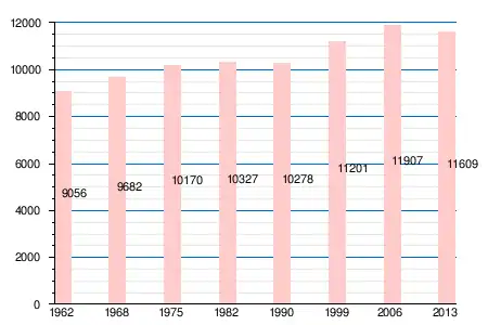 | 1962 | 1968 | 1975 | 1982 | 1990 | 1999 | 2006 | 2008 | 2011 | 2012 | 2013 |