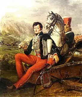 ![]() Портрет Мари-Жозефа Савуа-Кариньяна, принца Савойского дома, в гусарском мундире, 1811 год, художник Орас Верне. | |